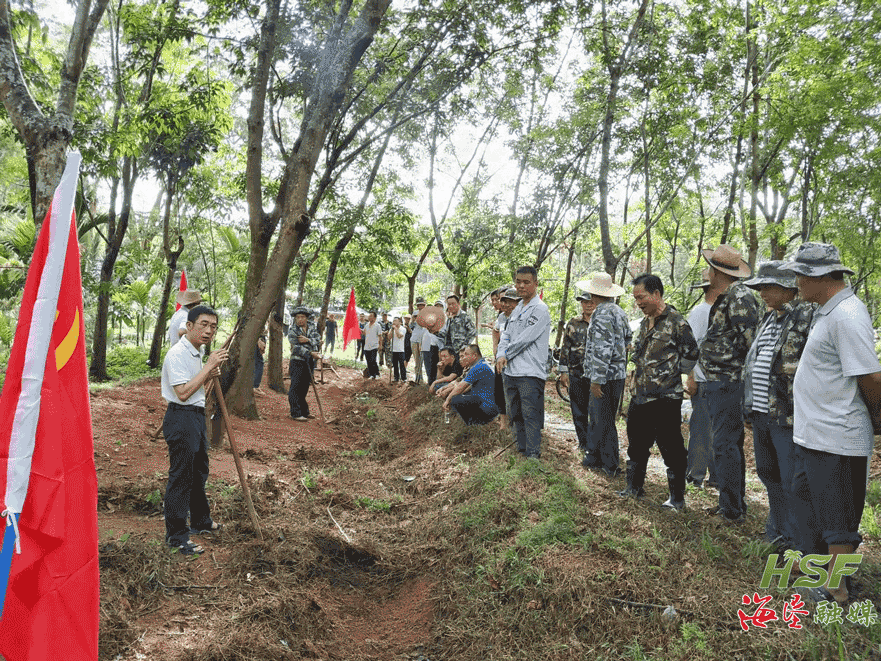 2023年6月1日,海南橡膠東興分公司黨委副書記、紀委書記符哲誠把會議開到橡膠林,為新入職的員工和新任命的生產隊管理人員,上了一堂別開生面的黨風廉政警示教育任職“第一課”。