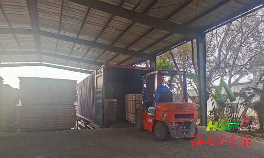 海南橡膠“零添加”FSC橡膠木刨光鋸材裝車發運